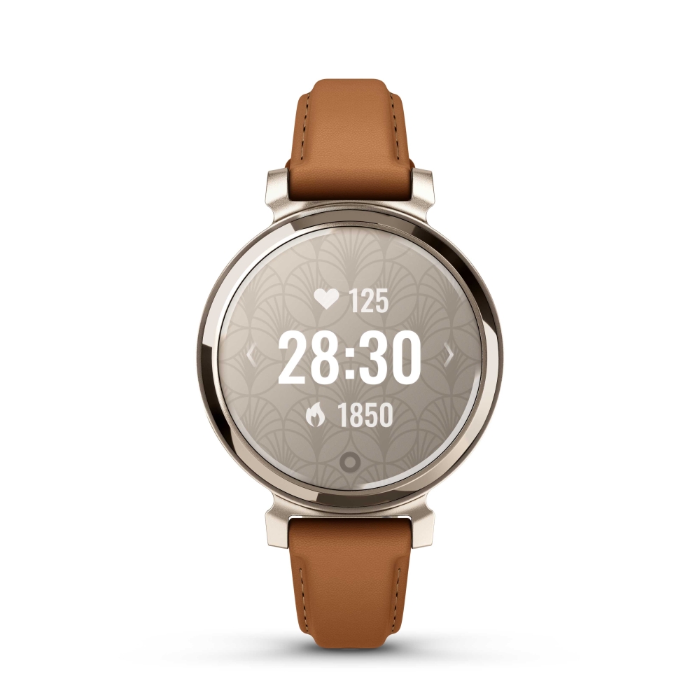 Garmin Lily 2 Classic - Dây da là chiếc đồng hồ thông minh nhỏ gọn nổi bật với màn hình ẩn và ống kính có hoa văn bắt mắt đi kèm các tính năng cải tiến về sức khỏe và thể chất, được thiết kế riêng cho cuộc sống năng động của bạn.
