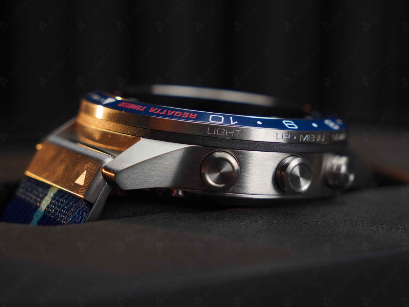 Thẳng tiến đến đích với thiết kế hàng hải kết hợp hai màu sắc táo bạo, đi cùng dây đeo lai bằng da và cao su FKM, dệt bằng vải jacquard ba màu tinh tế giúp bạn dẫn đầu mọi cuộc đua giữa đại dương mênh mông. Đi kèm mặt kính sapphire hình vòm, màn hình luôn hiển thị và bộ đếm thời gian regatta cải tiến với công nghệ GPS giúp bạn xác định điểm khởi đầu tiện hơn bao giờ hết.