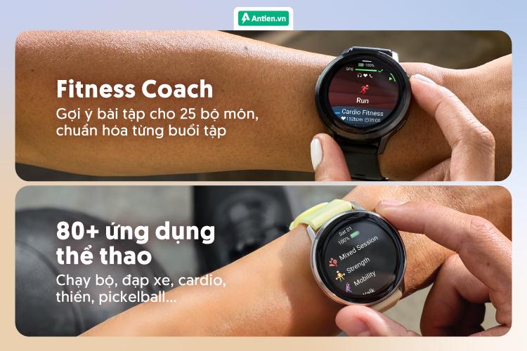 - Hệ thống đề xuất bài tập hàng ngày và huấn luyện trực tiếp trên cổ tay sẽ gợi ý bài tập phù hợp thể trạng hiện tại.