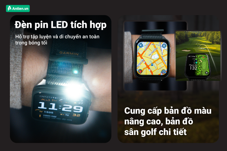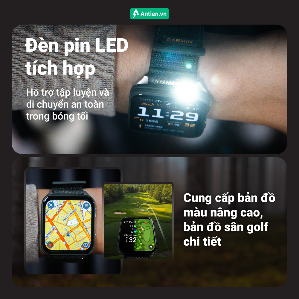 Với những ai đam mê golf, đồng hồ còn hỗ trợ chuyên sâu với bản đồ CourseView màu sắc sinh động cho hơn 43.000 sân golf toàn cầu, cho phép bạn xem khoảng cách đến vùng green, điểm đánh bóng, chướng ngại vật và nhiều hơn thế.