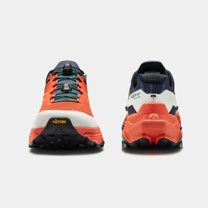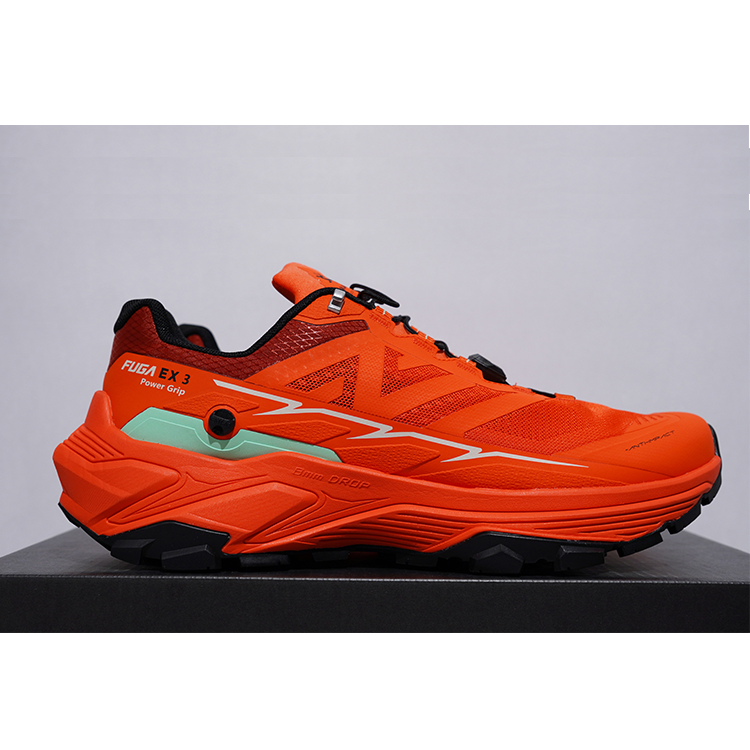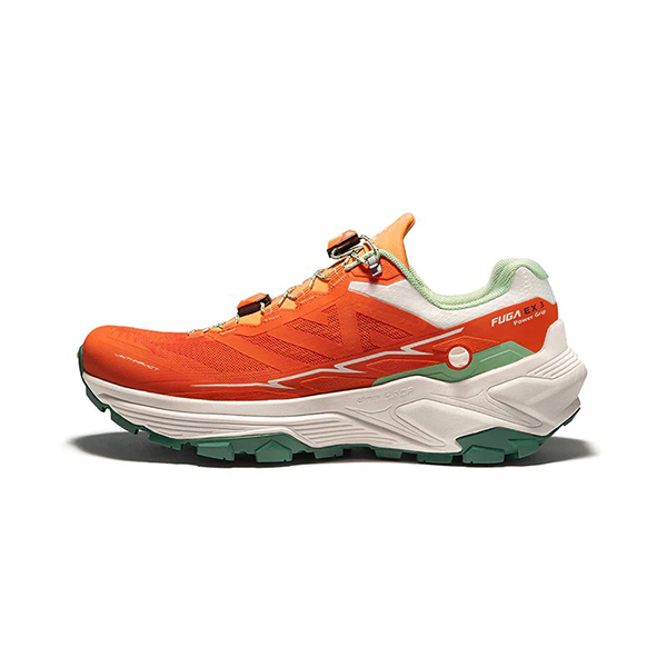 Giày chạy trail Kailas Fuga EX 3 có kiểu dáng thể thao với thiết kế ôm sát bàn chân người dùng giúp hỗ trợ người dùng khi chạy tốt nhất. Phần mặt trên được làm từ chất liệu vải lưới kỹ thuật hàn màng TPU tăng độ cứng cáp của giày giúp bảo vệ ngón và lưng bàn chân cùng hệ thống dây buộc thông minh cố định bàn chân và cổ chân khi lên xuống dốc. Phần đề giữa được làm bằng chất liệu bọt mật độ kép siêu nhẹ cùng độ đàn hồi và khả năng giảm lực được nâng cao. Phần đế ngoài được làm bằng chất liệu Vibram Megagrip sử dụng công nghệ Litebase nhẹ hơn 30% so với các vật liệu thông thường nhưng vẫn giữ được độ cứng cáp và chắc chắn cho giày.