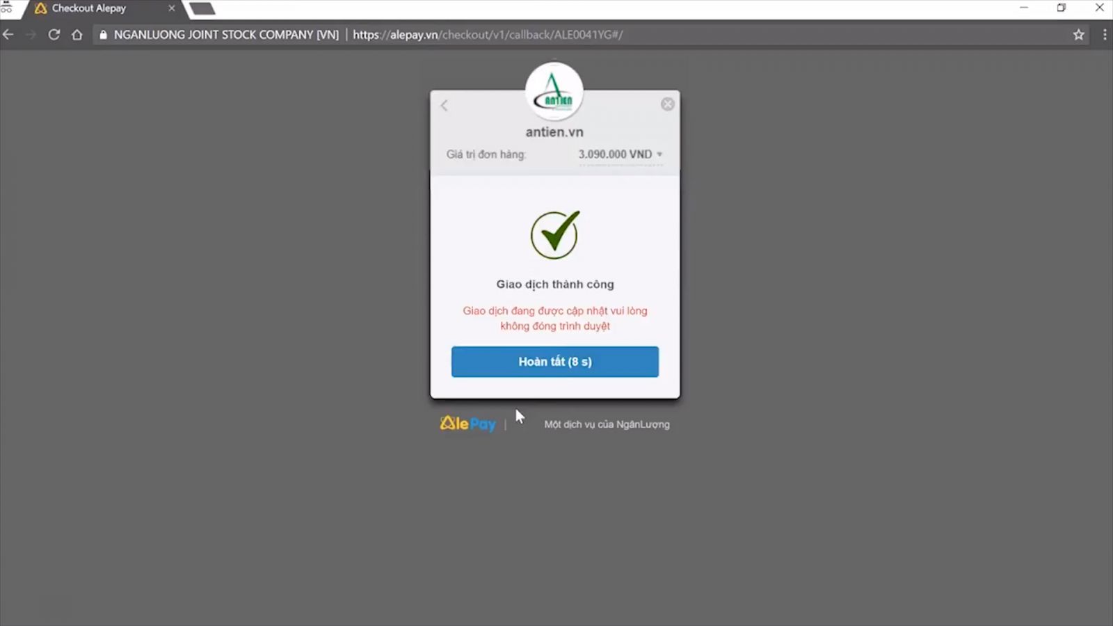 Bảng thông báo hoàn tất giao dich sẽ hiện ra