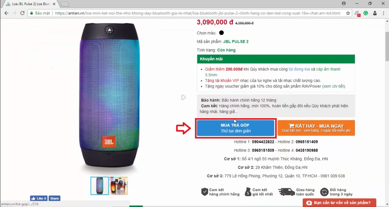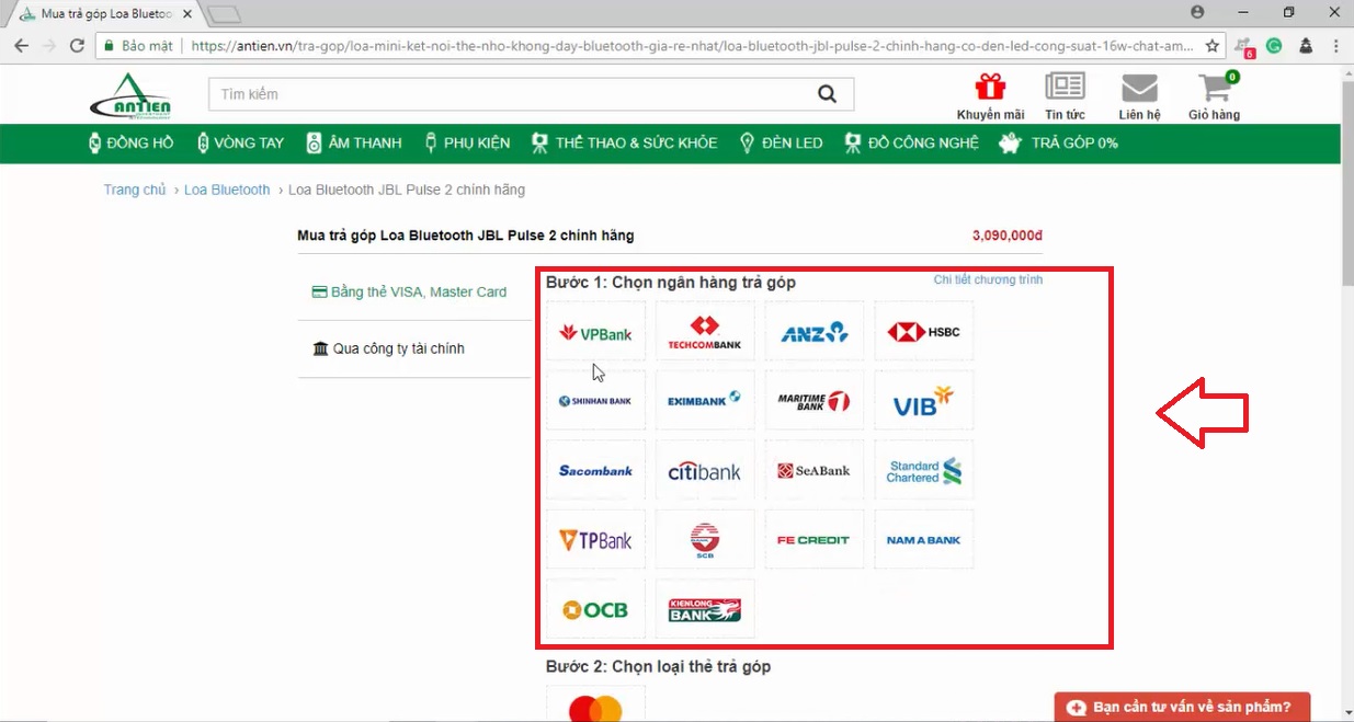 B1: Truy cập vào website Antien.vn và chọn sản phẩm bạn cần mua trả góp