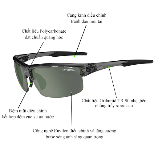 Kính mắt chơi golf Tifosi Rivet Crystal Smoke được trang bị công nghệ tròng kính Enliven giúp giảm độ sáng của môi trường, từ đó giúp kính cung cấp tầm nhìn ổn định ngay cả trong điều kiện ánh sáng mạnh. Ngoài ra điểm nhấn ấn tượng của công nghệ Enliven đó là khả năng bắt màu và tinh chỉnh các bước sóng ánh sáng quan trọng nhất như xanh lá, xanh lam và đỏ nhờ công nghệ Color Capture được tích hợp sẵn trên mắt kính. Điều đó giúp ích cực kỳ quan trọng cho những golfer khi trải nghiệm đánh golf với kính chơi golf Tifosi Rivet Crystal Smoke, giúp người đeo đọc địa hình và theo dõi bóng 1 cách chính xác nhất. Kết hợp cùng độ xuyên sáng chỉ 16% giúp mắt người dùng không bị mỏi và đảm bảo vận động thể thao ổn định.