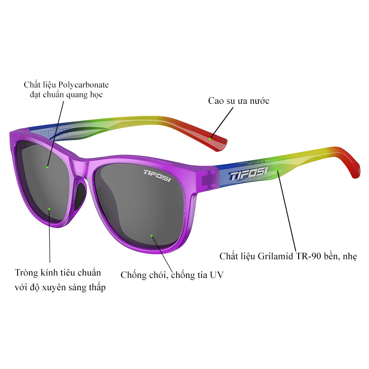 Loại bỏ chói mắt: Tròng kính Smoke của Tifosi Swank có khả năng giảm độ chói, giúp người dùng nhìn rõ hơn trong điều kiện ánh sáng mạnh. Điều này đặc biệt quan trọng đối với người chạy bộ, đạp xe, leo núi,... thường xuyên hoạt động ngoài trời.