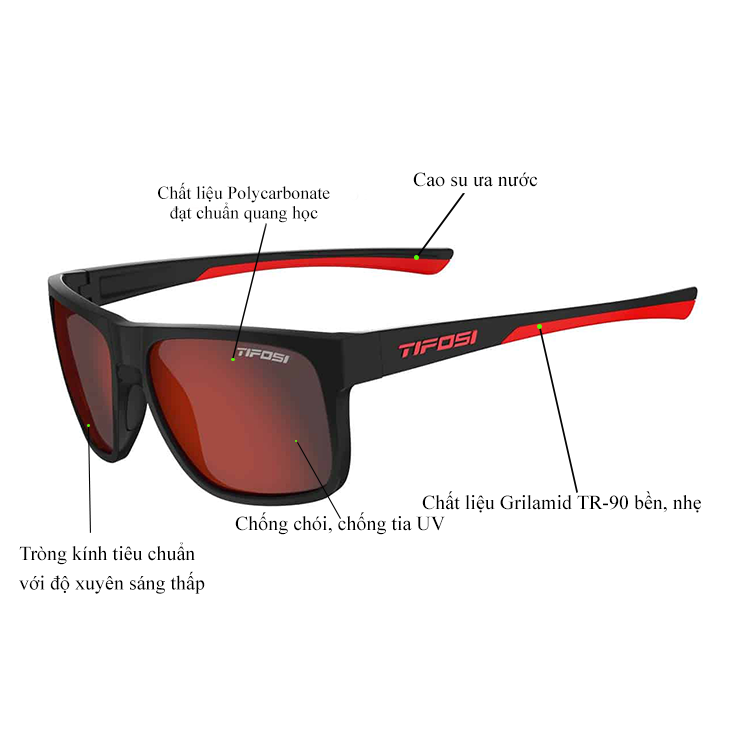 Tăng cường tầm nhìn: Tròng kính của Tifosi Swick Satin Black/Crimson được phủ lớp chống chói độc quyền giúp giảm chói, tăng cường tầm nhìn rõ nét trong điều kiện ánh sáng mạnh.