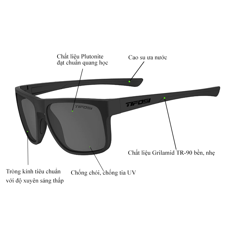 Tròng kính được phủ lớp chống chói độc quyền của Tifosi làm giảm mỏi mắt.