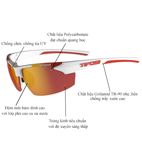 Thông tin kính thể thao Tifosi Track White/Red
