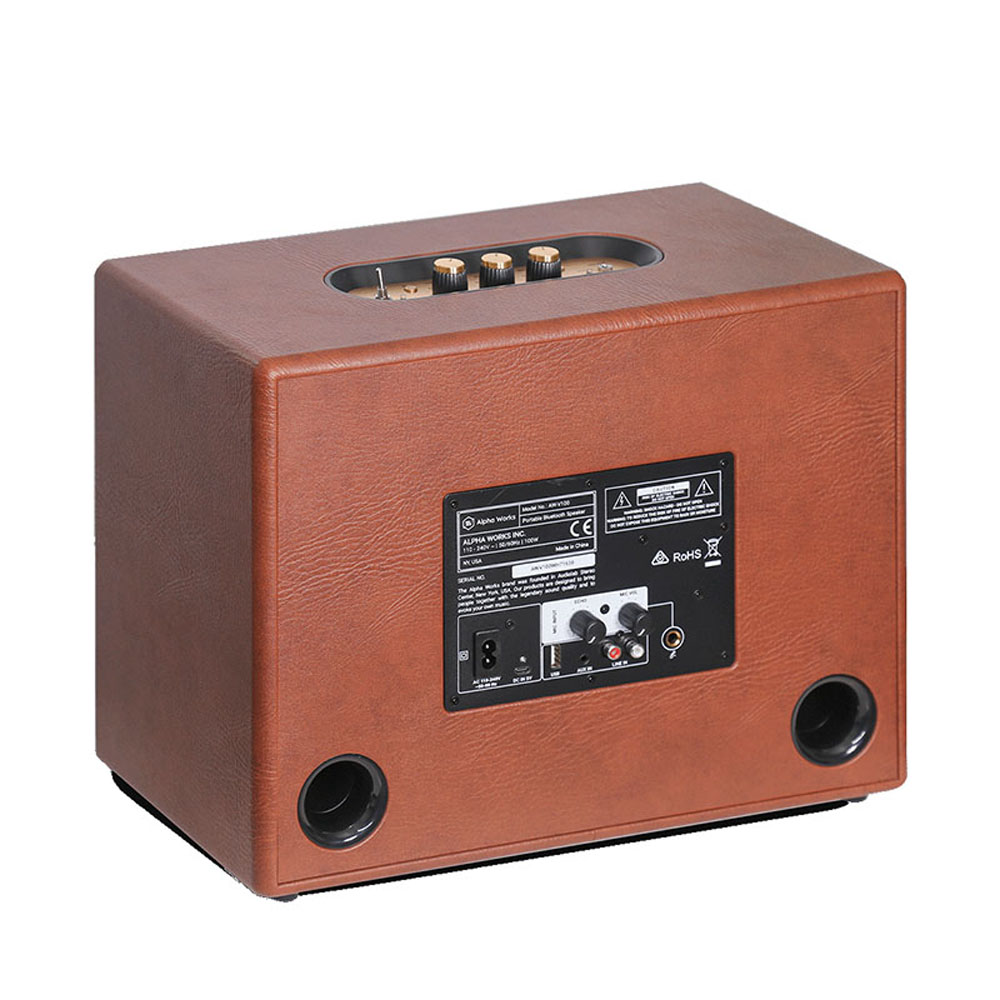 Classic V100 sở hữu vẻ đẹp tinh tế, có thể dùng làm món decor cao cấp để tôn lên mĩ quan không gian ngôi nhà, quán café... Vẻ ngoài của loa được chăm chút một cách tỉ mỉ trên từng đường nét nêu bật ngôn ngữ thiết kế đậm chất hoài cổ. Loa sử dụng chất liệu da microfiber leather cao cấp giúp chống hơi nước và ẩm mốc, thân thiện với môi trường và được gia công tinh xảo. Ở mặt trước, logo AW (Alpha Works) được cách điệu và đặt ở giữa tạo nhận diện và hài hòa cho thiết kế tổng thể.