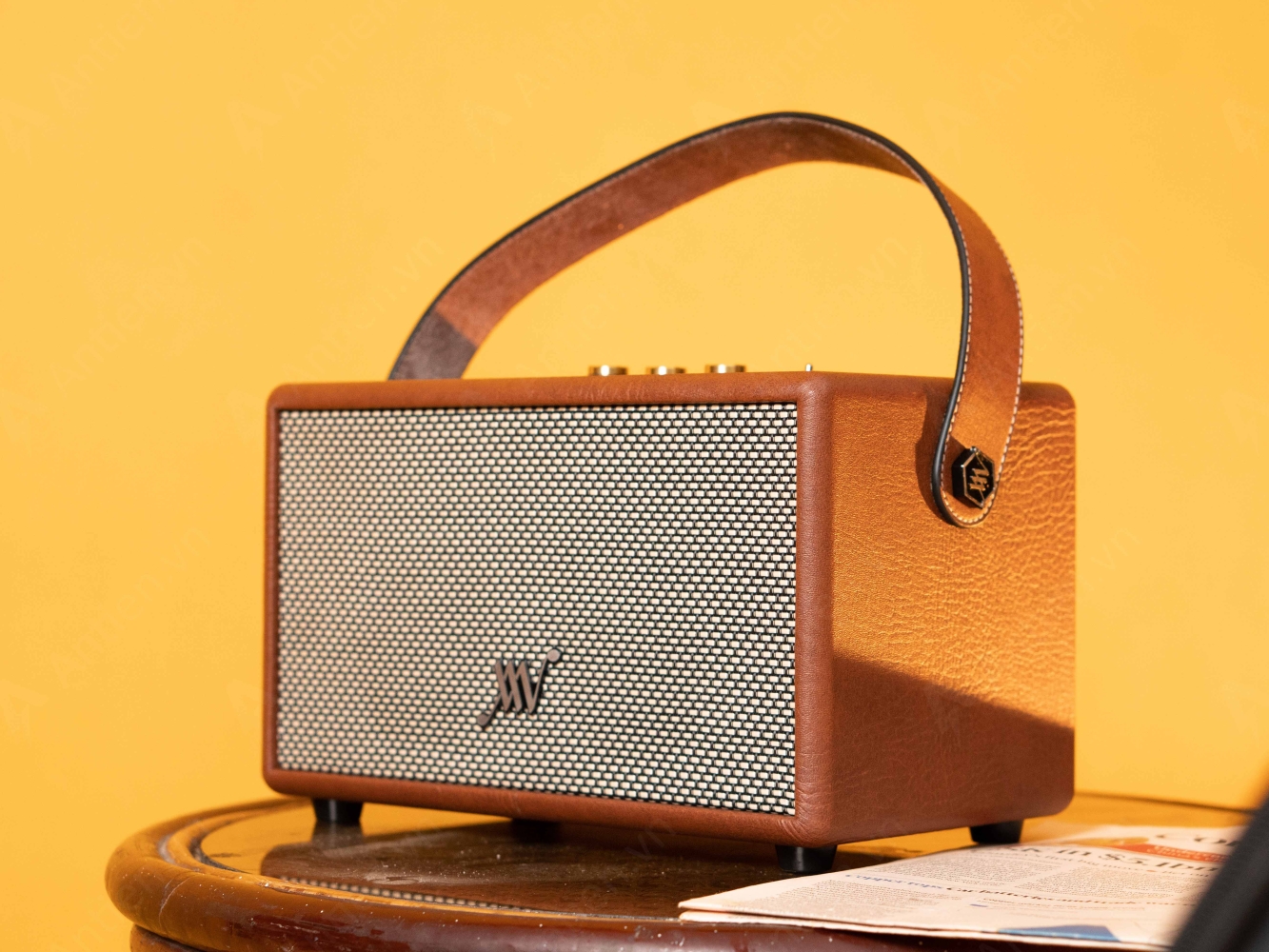 Loa bluetooth AW Classic V80 nổi bật với vẻ ngoài sang trọng và kích thước cân đối 355 x 195 x 197 mm. Vỏ ngoài loa được hoàn thiện từ chất liệu da microfiber leather cao cấp, thân thiện với môi trường. Các chi tiết được chăm chút tỉ mỉ trên mọi đường nét vô cùng bắt mắt và giàu cảm hứng, bạn có thể dùng loa như một món đồ nội thất tinh tế trang trí cho ngôi nhà, quán café…