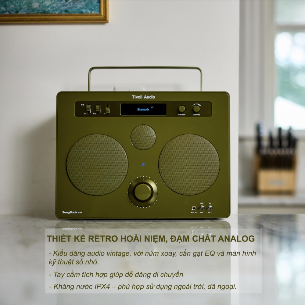 Tivoli Audio SongBook MAX là lựa chọn hoàn hảo cho những ai đang tìm kiếm một chiếc loa không chỉ mạnh mẽ về hiệu suất âm thanh mà còn mang đậm dấu ấn cá nhân và giá trị thẩm mỹ. Dù bạn là người đam mê âm thanh analog, một tay guitar nghiệp dư, hay đơn giản là một tín đồ của phong cách retro, SongBook MAX sẽ là người bạn đồng hành lý tưởng – nơi hoài niệm gặp gỡ hiện đại trong từng thanh âm.