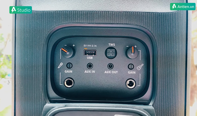 Cổng TWS ở mặt sau của JBL Party Box 110 giúp bạn kết nối với 1 loa JBL Party Box khác để tạo nên 1 hệ thống stereo, giúp cho không gian nghe nhạc của bạn được tràn ngập âm thanh và bữa tiệc thêm hứng khởi.