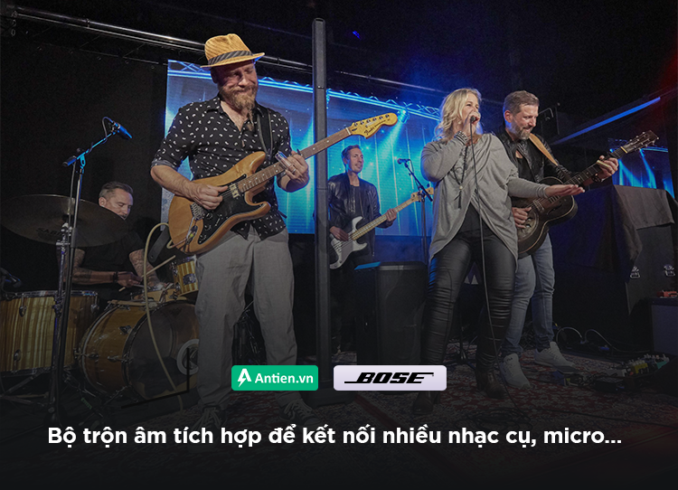 Mỗi hệ thống L1 Pro đều có bộ trộn âm tích hợp, vì vậy bạn có thể kết nối nhiều nhạc cụ, micrô và các nguồn khác một cách dễ dàng. Trên loa L1 Pro16 bạn nhận được hai đầu vào kết hợp XLR-1/4 inch, đầu vào AUX ¼ inch và 1/8 ich(3,5 mm) đều hỗ trợ nguồn phantom 48V dễ sử dụng, cùng với khả năng phát trực tuyến Bluetooth®. Bộ mã hóa quay được chiếu sáng cho phép bạn truy cập tức thì vào cài đặt âm lượng, âm sắc và âm vang trên mỗi kênh. Chọn giữa các cài đặt trước EQ của hệ thống được tối ưu hóa cho nhạc sống, nhạc đã ghi và hơn thế nữa. Và bổ sung thêm nhiều nhạc cụ và nguồn âm thanh khác thông qua cổng ToneMatch chuyên dụng - một cáp cung cấp cả nguồn và âm thanh kỹ thuật số giữa hệ thống và bộ trộn Bose T4S hoặc T8S (tùy chọn).