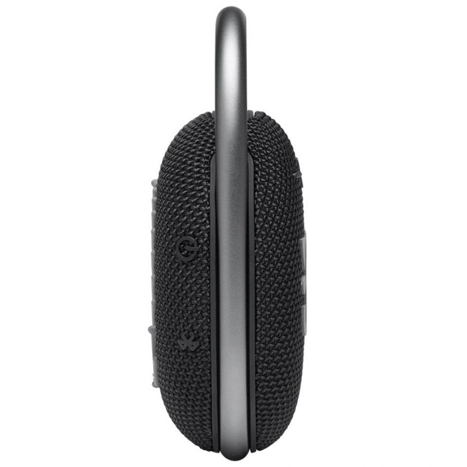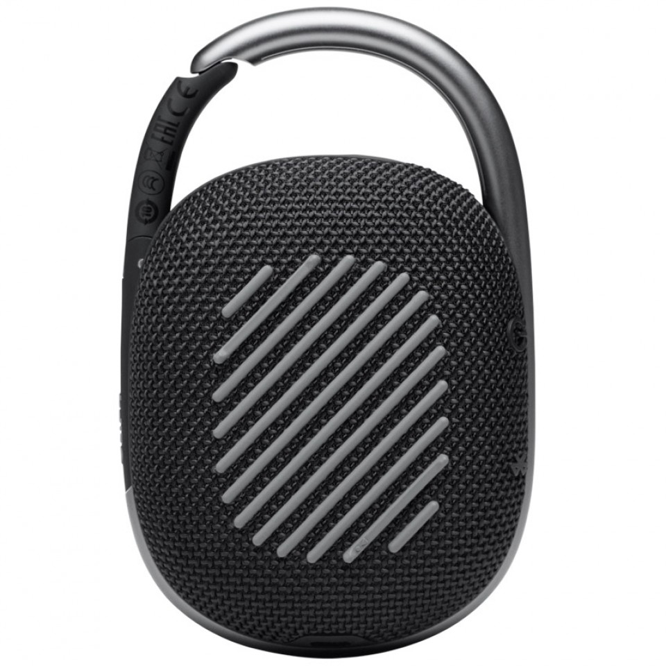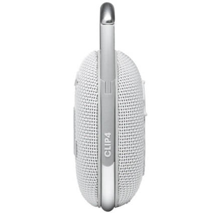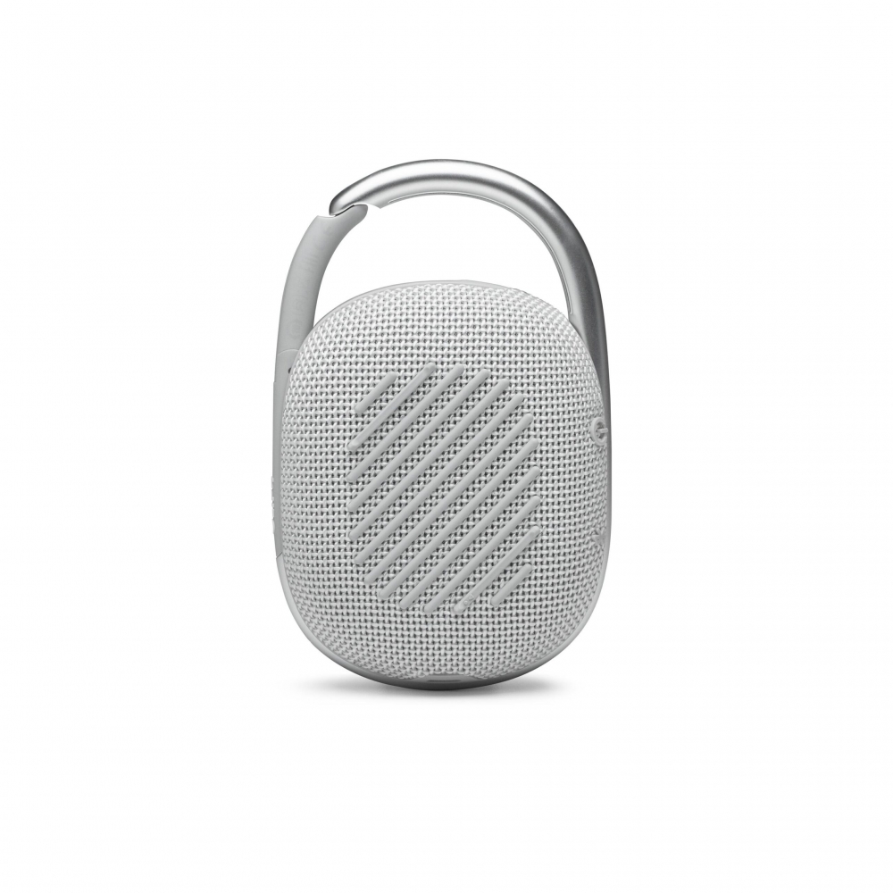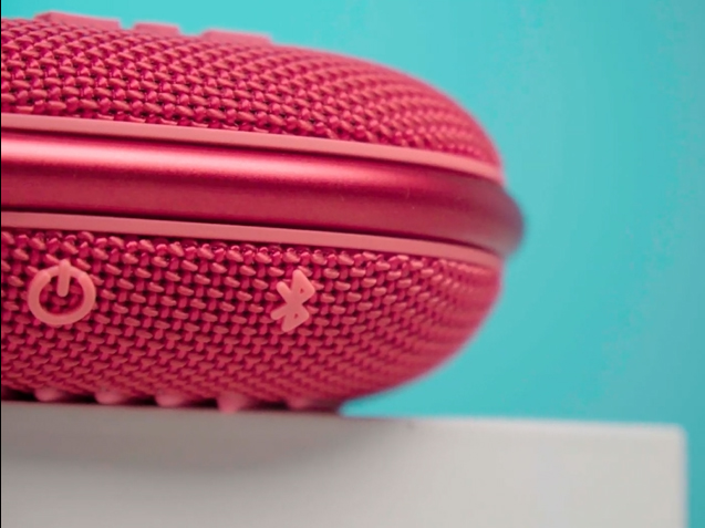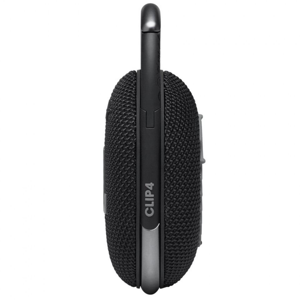 Clip 4 sử dụng chất liệu phủ cao su cho cảm giác mềm mại và thỏa mái khi cầm nắm. Mặt trước loa là logo JBL in lớn với bộ 3 nút bấm: tăng/giảm âm lượng và nút dừng bài hát. Bên trên là 1 đèn báo kết nối. Các phần vải đan ở trước cũng tỉ mỉ và chi tiết tô điểm cho nét đẹp tinh tế của sản phẩm. Loa cũng được trang bị cổng sạc Type C thời thượng và tiện lợi.