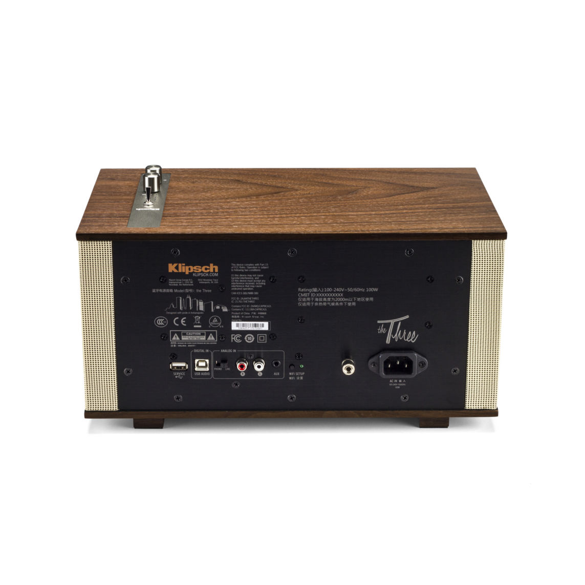 Hệ thống củ loa của Capitol Three được khuếch đại bởi mạch ampli tích hợp có công suất 60W (cực đại 80W), đủ cho việc sử dụng ở những không gian cỡ vừa. Ngoài kết nối Bluetooth như những loa không dây thông thường, Klipsch The Capitol Three còn hỗ trợ các giao tiếp cắm đây trực tiếp như Aux (3,5mm), RCA analog, phono và cả USB-B. Trong đó, cổng USB-B cho phép tiếp nhận và giải mã tín hiệu âm thanh số độ phân giải cao, tối đa 24-bit/192kHz. Ngoài ra, loa còn được trang bị kết nối Wi-Fi dành cho việc kết nối âm thanh không dây chất lượng cao thông qua DTS Play-Fi. Nhờ đó, ứng dụng di động Klipsch Stream giúp người dùng có thể dùng Capitol Three để nghe nhạc từ các dịch vụ trực tuyến như Tidal, Spotify, Pandora…