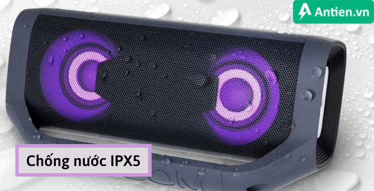 Loa Bluetooth XBoom PN5 được trang bị tiêu chuẩn kháng nước IPX5, bạn có thể yên tâm sử dụng loa ở ngoài biển hoặc ngay tại bể bơi mà không lo tình trạng loa gặp nước rồi hỏng.
