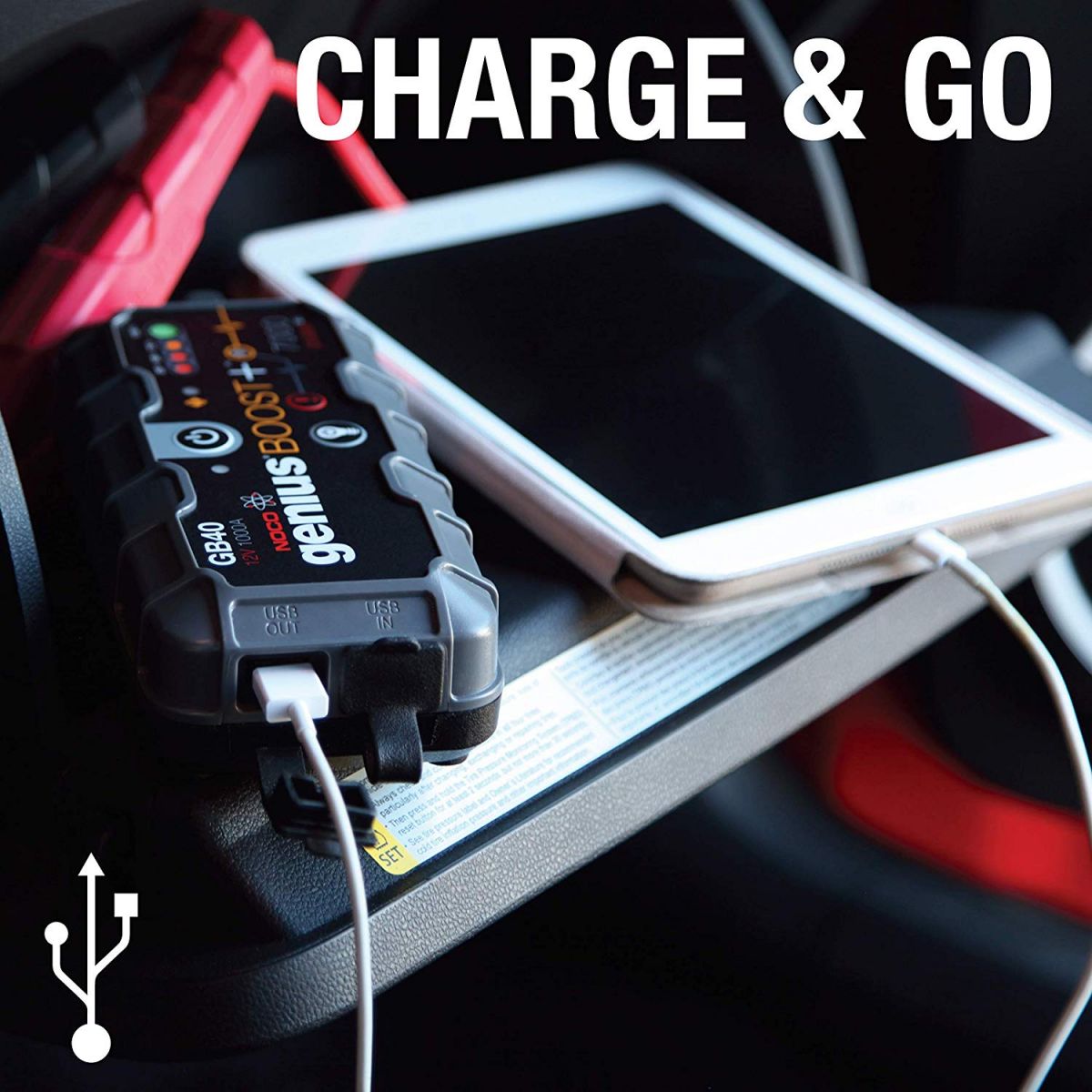 Không chỉ là 1 bộ kích nổ xe hơi, NOCO GB40 còn là 1 cục sạc dự phòng thứ thiệt. Bộ kích nổ kiêm sạc dự phòng NOCO GB40 được trang bị 1 cổng USB 2.1A cho phép bạn sạc lại các thiết bị di động của bạn như điện thoại, máy tính bảng,...