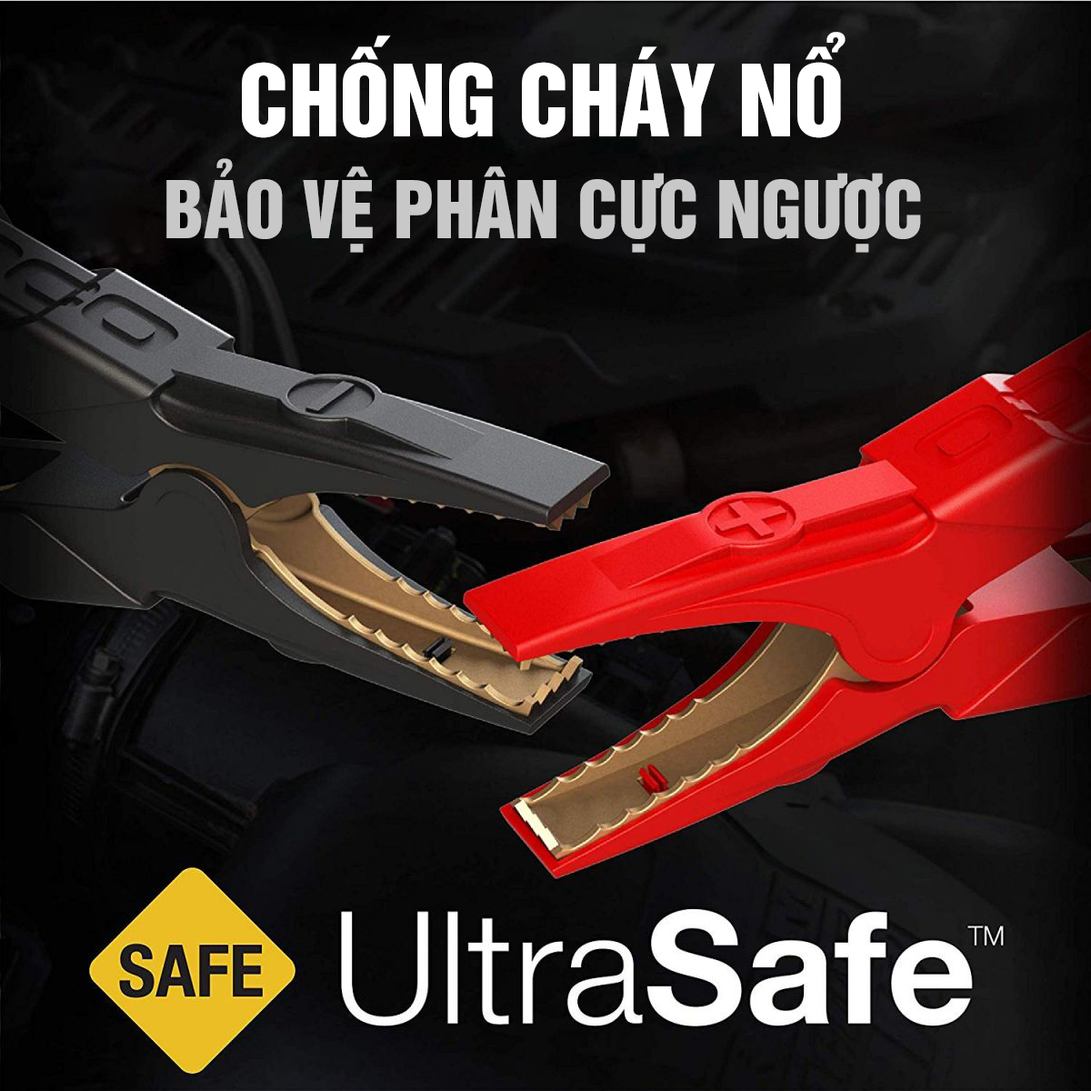 Bộ kích nổ ắc-quy ô tô NOCO GB50 sử dụng kẹp thông minh, an toàn với các tính năng chống cháy nổ và bảo vệ phân cực ngược, cắm lộn cực âm dương hay cho 2 cực chạm vào nhau không hề phát tia lửa điện, máy sẽ báo hiệu nếu cắm sai. Tất cả những điều này làm cho nó an toàn hơn để sử dụng cho người dùng.