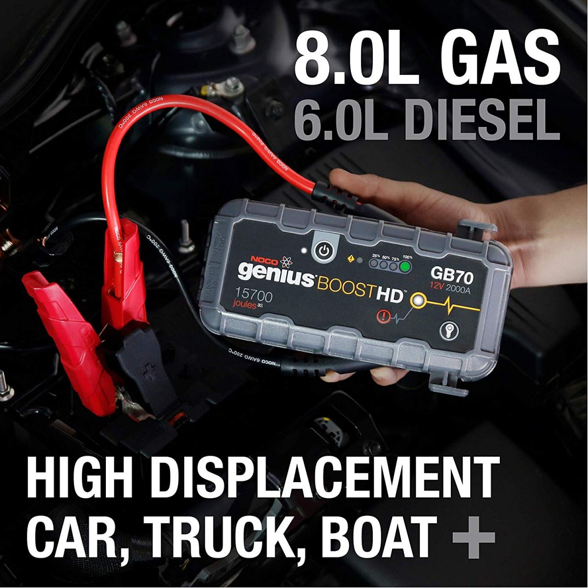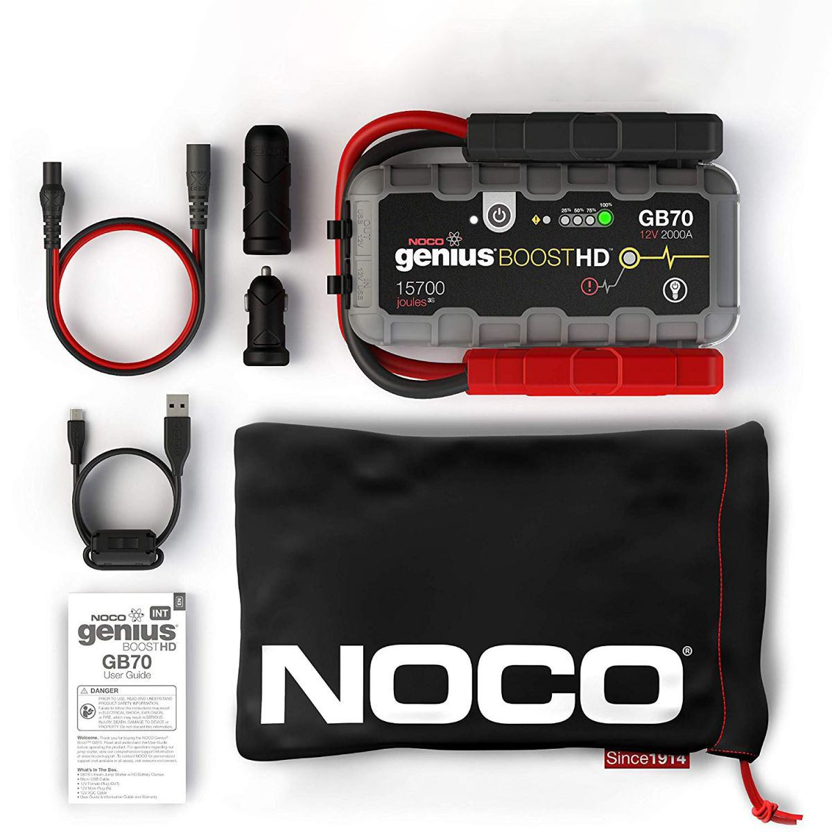 Noco GB70 là bộ khởi động xe hơi dùng pin lithium-ion di động, cung cấp 2.000 ampe để khởi động xe bị chết ắc-quy chỉ trong vài giây. Sản phẩm được sản xuất với nhiều công nghệ an toàn được cấp bằng sáng chế như chống tia lửa và bảo vệ phân cực ngược giúp an toàn và dễ dàng cho mọi người sử dụng.