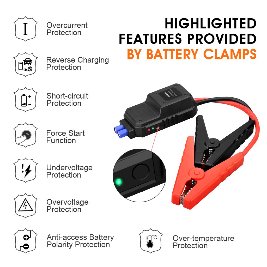 • Dòng khởi động lên đến 2000A: đi kèm với dòng khởi động 1000A và đạt cực đại 2000 amps ngay lập tức; khởi động lại động cơ xe của bạn trong vài giây; đủ mạnh để khởi động tất cả các xe 12V, từ xe gia đình của bạn đến xe tải hạng nặng