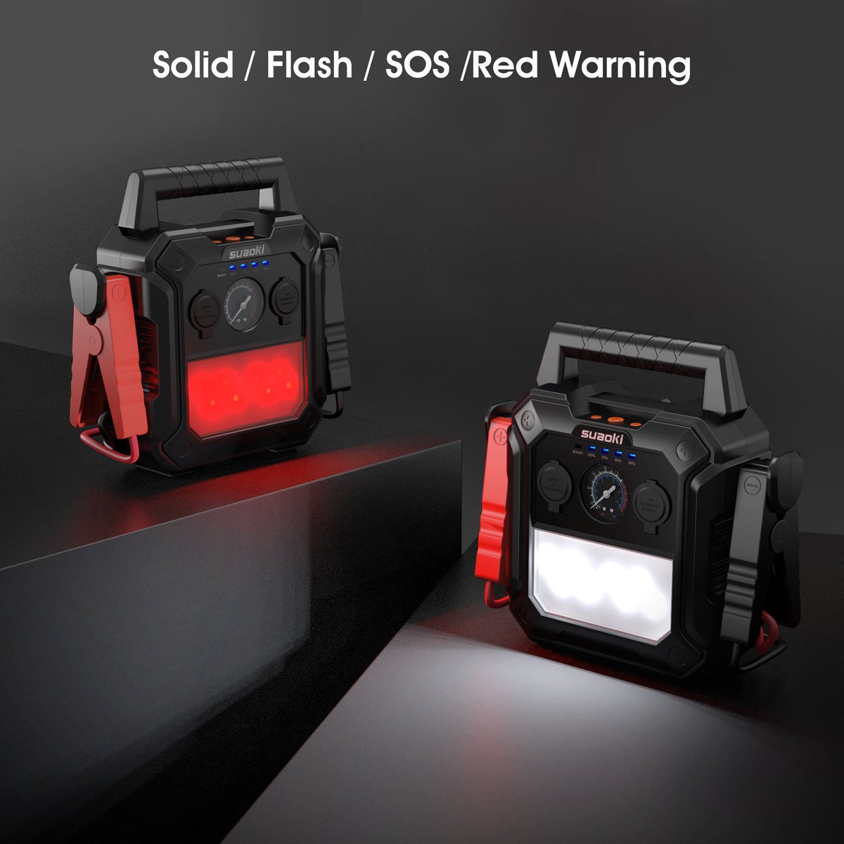 Bộ khởi động xe hơi Suaoki U29 được tích hợp đèn pin siêu sáng với cường độ cao giúp bạn chiếu sáng khi tối. Nó có 4 chế độ ánh sáng bao gồm (mạnh, SOS, nhấp nháy và khẩn cấp) để sử dụng trong nhiều trường hợp khác nhau. Đèn làm việc cường độ cao này cung cấp nhiều giờ hoạt động cho bạn.