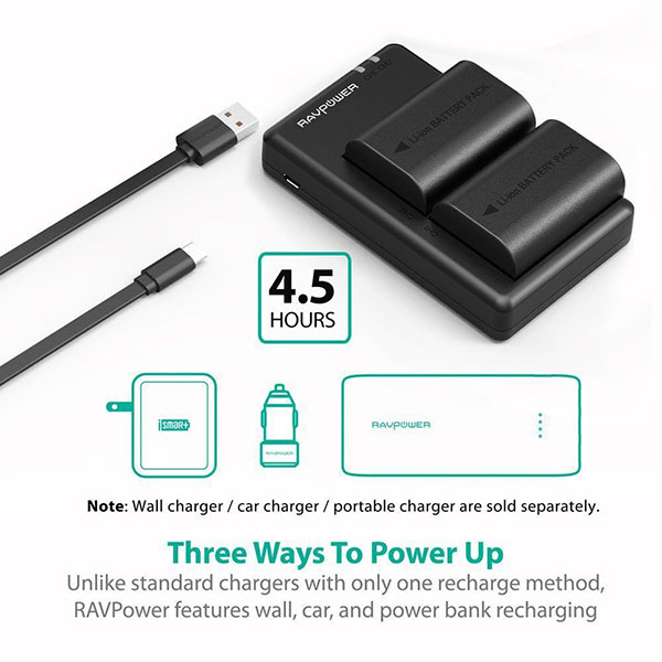Bao giờ có một pin cạn kiệt khi chụp bên ngoài mà không có cách nào để sạc? Trong khi hầu hết các bộ sạc pin của máy ảnh chỉ cho phép sạc trên tường, Bộ sạc có thể sạc lại của RAVPower cho Máy ảnh Canon bao gồm sạc qua xe hơi của bạn hoặc với một pin sạc dự phòng. Như vậy bạn có ba phương pháp để sạc pin cho dù bạn đang ở nhà hoặc ra ngoài chụp ảnh.