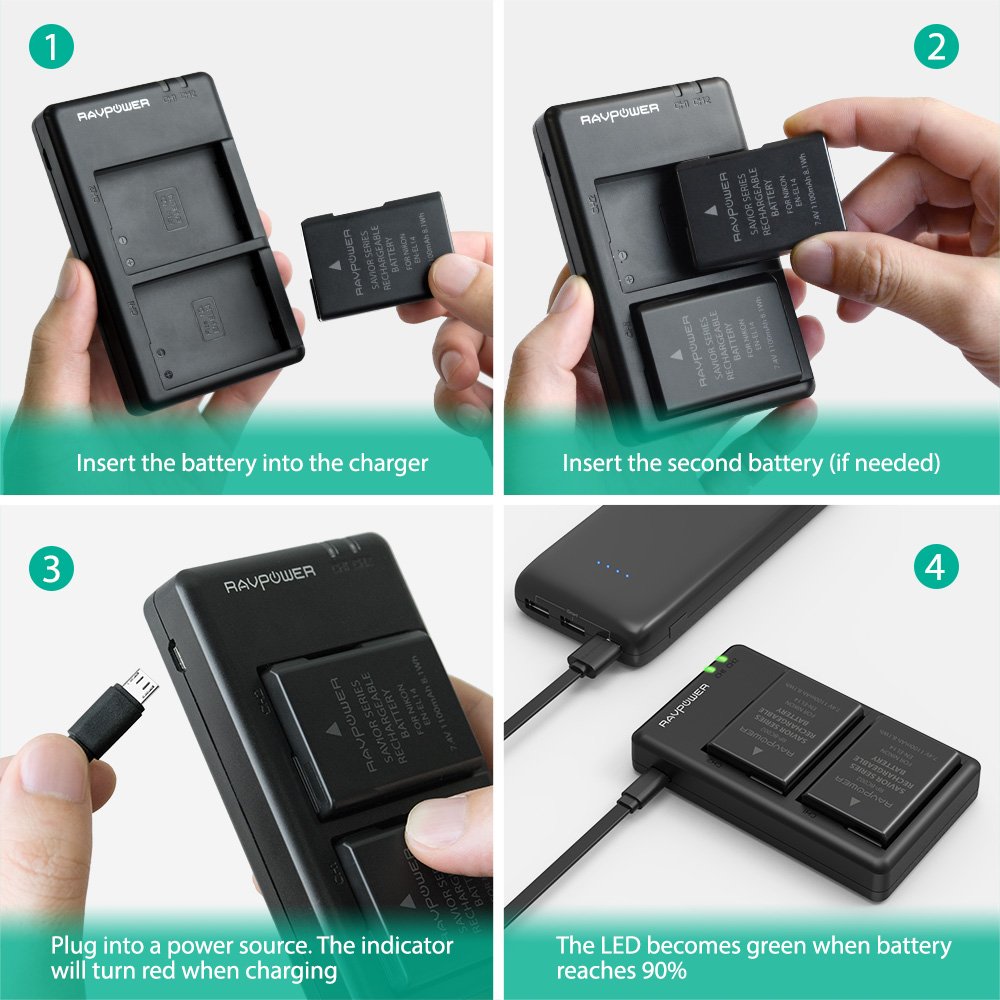 Pin thay thế RAVPower được thực hiện theo các thông số kỹ thuật chính xác của pin Nikon EN-EL14 với dung lượng lớn hơn một chút là 1100mAh. Cũng giống như pin gốc của bạn, pin RAVPower cũng có thể được sạc bên trong máy ảnh của bạn hoặc với bộ sạc gốc. Bộ sạc và pin hoàn toàn có thể hoán đổi cho nhau.