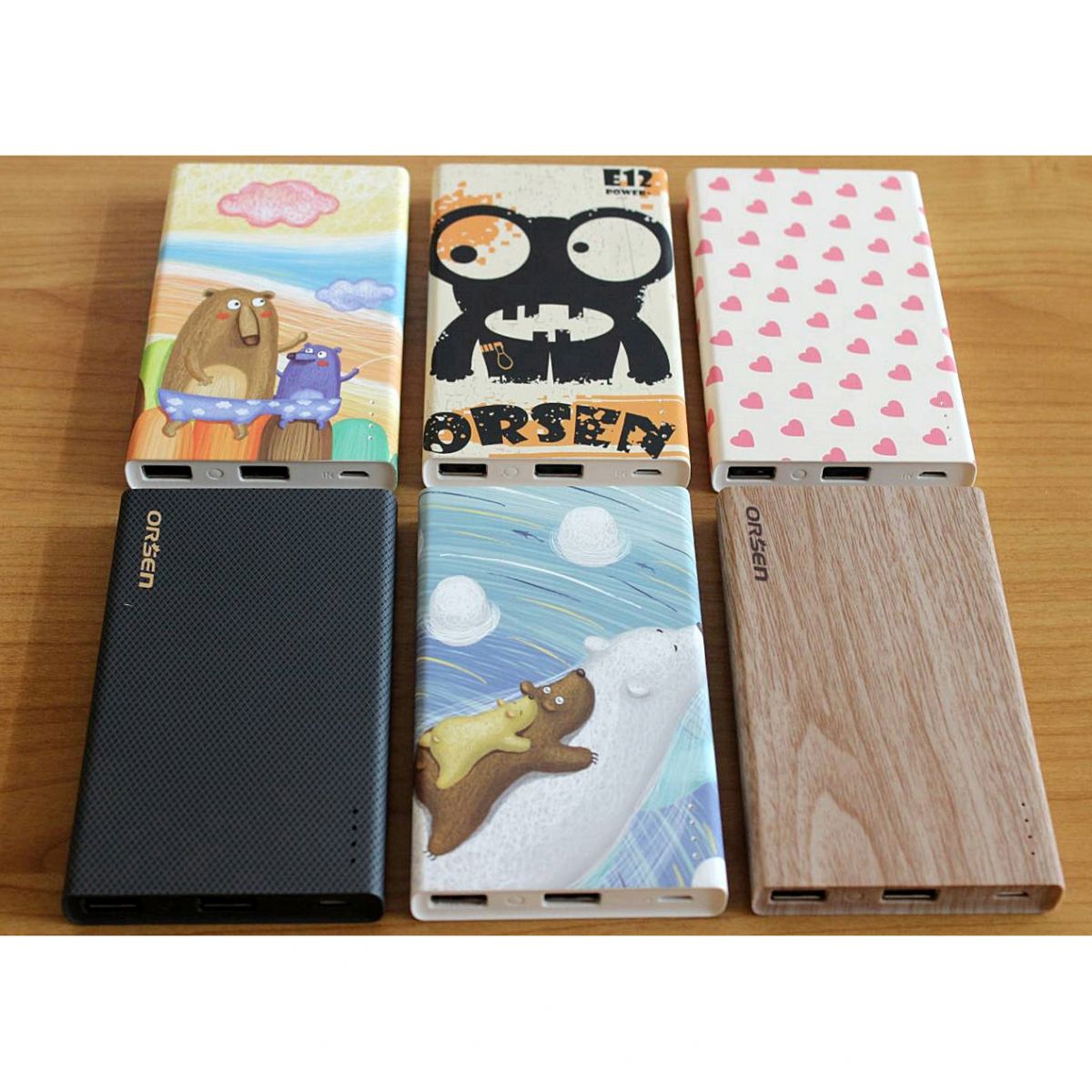 Pin dự phòng Orsen E12 có 6 hình ảnh màu sắc thiết kế đẹp, đa dạng và đáng yêu phù hợp với cá tính của tất cả mọi người