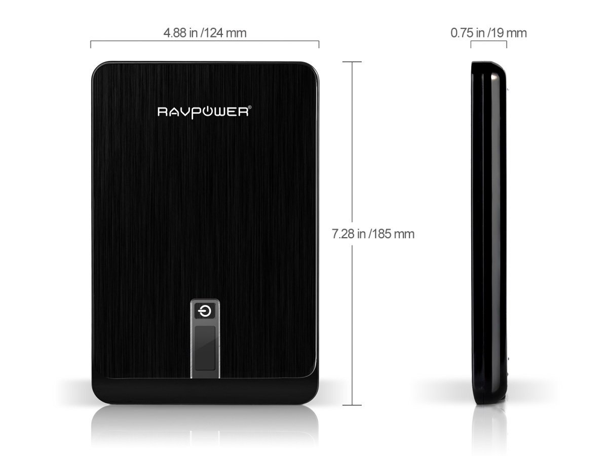 Được thiết kế có kích thước tổng thể khá lớn, tuy nhiên RAVPower PB14 lại ghi điểm ở chất lượng gia công tốt và vật liệu cấu tạo cao cấp. Mặt trên của Ravpower 23000mAh được làm dạng nhôm xước màu đen rất tinh tế và sang trọng. Điểm nhấn ở mặt này là logo RAVPOWER, nút nguồn và đèn LED hiển thị các thông số như phần trăm pin còn lại, tình trạng sạc, điện áp...
