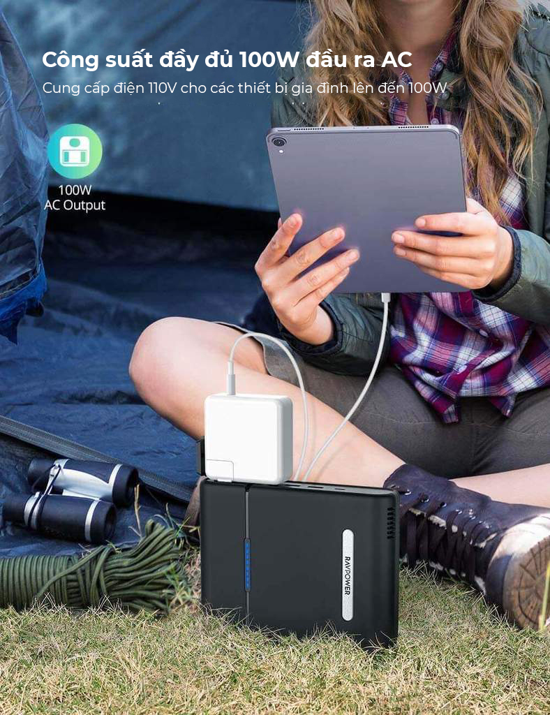 Việc trang bị ổ cắm AC với điện áp lên đến 220V/50Hz cho phép RAVPOWER Xtreme 30000mAh không chỉ sạc được cho Macbook mà còn có khả năng tương thích với gần như 100% các loại Laptop hiện có trên thị trường cũng như các thiết bị điện dân dụng tại Việt Nam