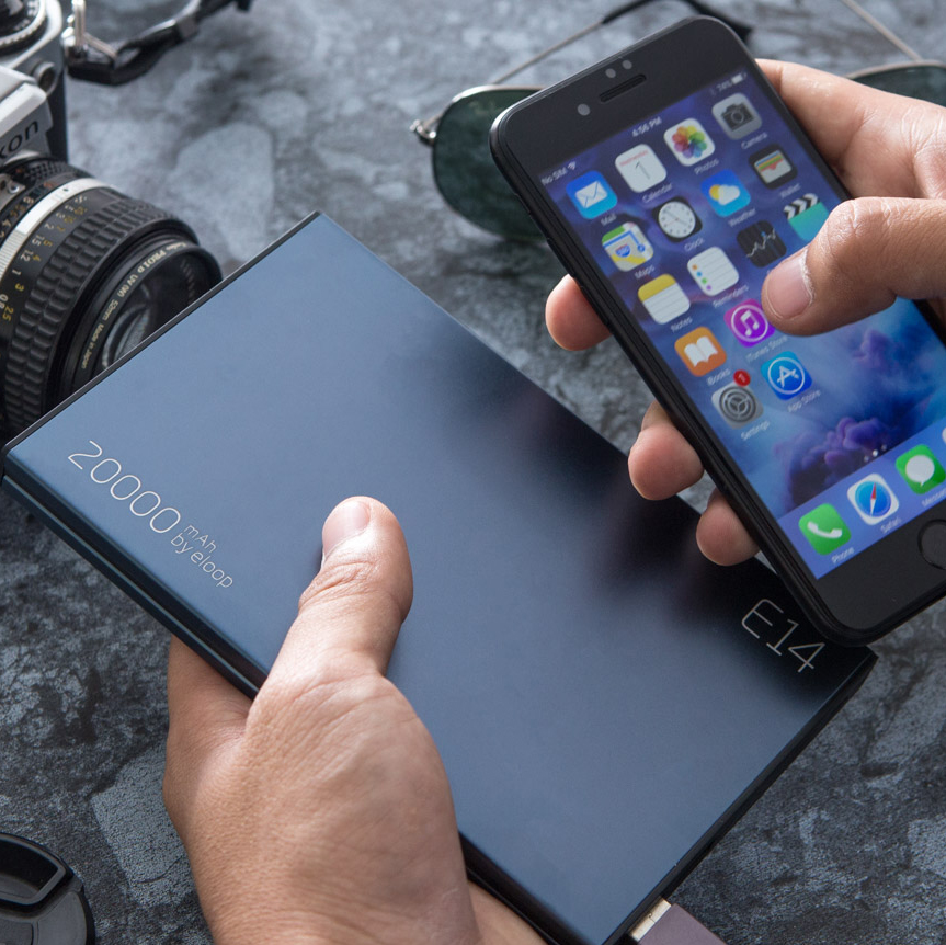 Sạc pin tích điện ELOOP E14 với dung lượng tích trữ lên đến 20.000 mAh, là một trong số những pin đa năng dùng công nghệ pin Li-Po có dung lượng khủng nhất hiện nay trên thị trường. Pin sạc dự phòng Li-Po 20.000 mAh có khả năng nạp đầy hơn 10 lần cho iPhone và khoảng 2-3 lần cho 1 chiếc iPad Air 2.
