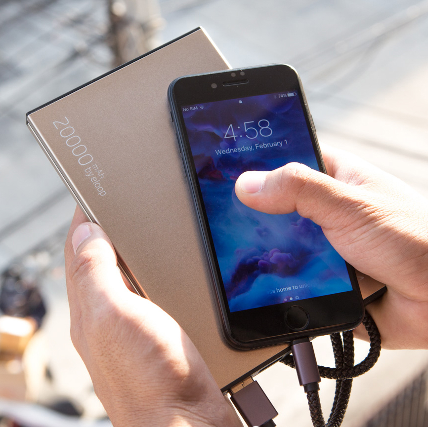 Sạc pin tích điện ELOOP dung lượng 20.000 mAh sạc nhiều lần cho điện thoại.
