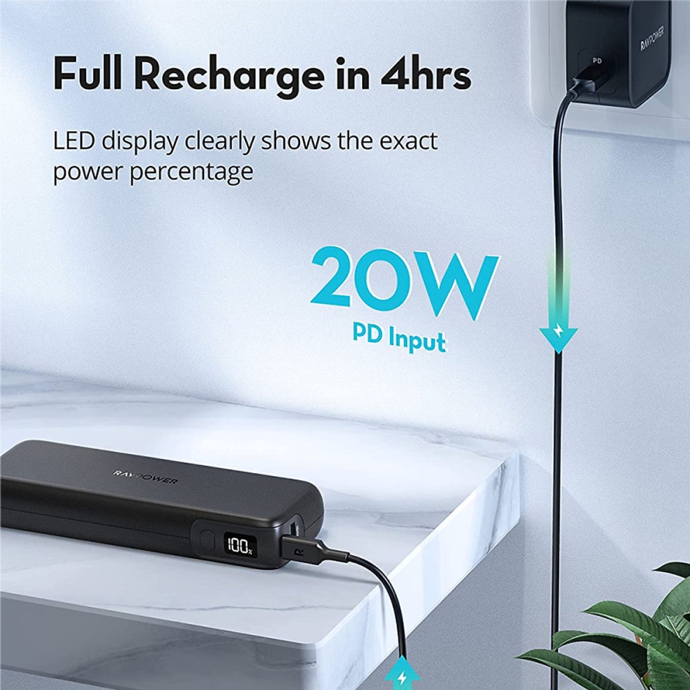 • Nạp đầy cực nhanh: Được trang bị đầu vào phân phối điện 18W, bộ sạc di động có thể được sạc đầy trong 4 giờ, khuyến nghị sử dụng bộ sạc PD (không bao gồm) để sạc nhanh hơn