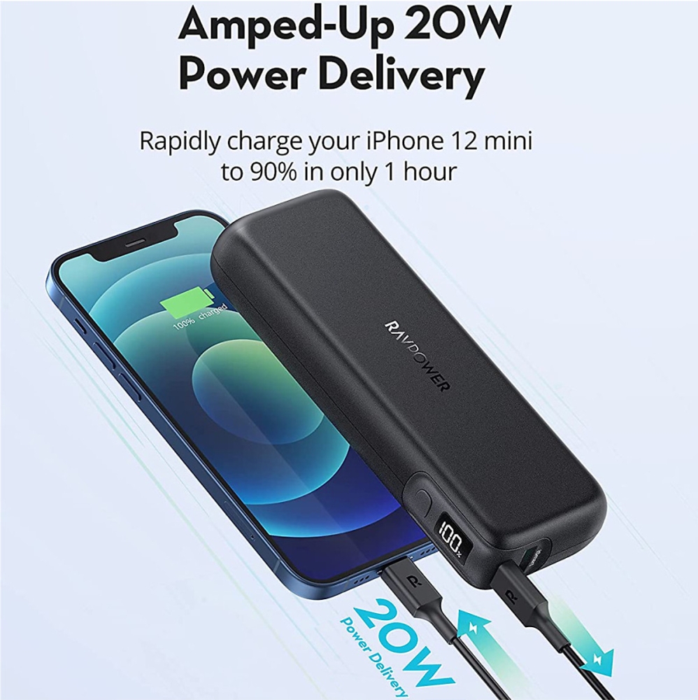 • Tốc độ sạc đáng kinh ngạc: Cổng phân phối điện 18W chỉ mất 30 phút để sạc lại iPhone 11 Pro của bạn từ 0% đến 50% bằng cáp USB-C to Lightning (không bao gồm)