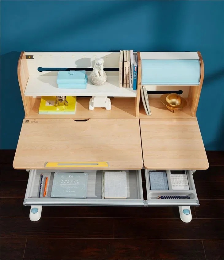 Mặt của bàn học bằng gỗ cao cấp 2M2KIDS QM120H có thể điều chỉnh độ nghiêng từ 0 ~ 37°, cung cấp cho trẻ các góc đặc biệt cần thiết cho việc vẽ, đọc, học và chế tạo.