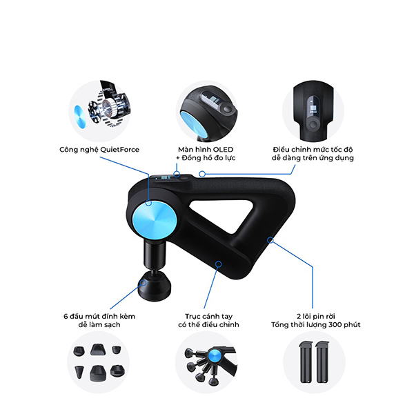 Máy massage Theragun Pro chính hãng hoạt động mạnh mẽ thông qua bộ gõ tạo lực đập mạnh, tác động sâu vào các vùng mô, cơ, giảm đau nhanh chóng và hiệu quả để trả lại sự thư thái và thoải mái cho cơ thể bạn.
