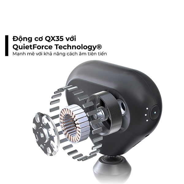 Súng Massage này sử dụng động cơ không chổi than QX35 với Công nghệ QuietForce giúp thiết bị hoạt động yên tĩnh . Độ ồn của máy rơi vào mức 70Db không quá ồn so với các mẫu khác trên thị trường