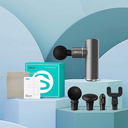 Súng massage body mini SKG F3 – EN giúp thư giãn cơ sâu và làm dịu mọi cơn nhức mỏi nhờ trang bị 4 đầu massage khác nhau cùng 4 mức cường độ cho phép xoa bóp sâu tới từng lớp cơ, thúc đẩy nhanh quá trình phục hồi cơ bắp.
