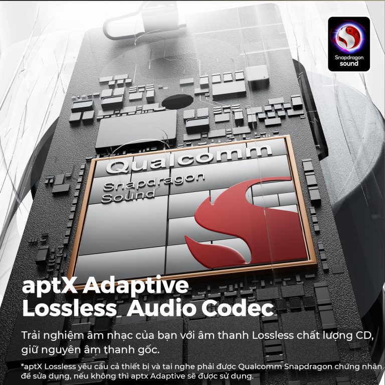 Với việc trang bị con chip QCC3071 cùng công nghệ APTX Adaptive Lossless - codec Bluetooth đầu tiên và duy nhất có khả năng truyền phát âm thanh chất lượng CD và là 1 phần của công nghệ âm thanh độc quyền thuộc thương hiệu chipset Qualcomm giúp âm thanh được truyền đến người dùng không bị mất dữ liệu, đảm bảo chất âm được trọn vẹn nhất như khi nghe đĩa CD.