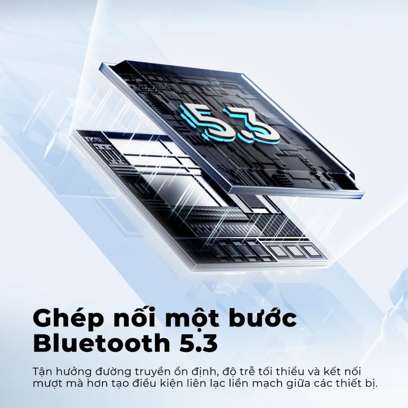 Bluetooth 5.3 kết nối ổn định, giảm độ trễ và giảm tiêu thụ pin.