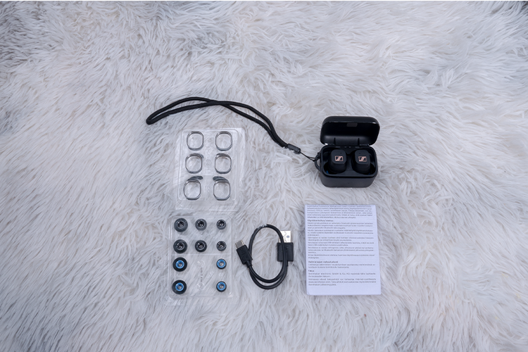 Đi cùng với đó, Sennheiser cung cấp cho người dùng 4 bộ vây tai nghe Earfin cao cấp cùng 4 bộ đệm tai silicone giúp phù hợp với mọi kiểu dáng và kích thước tai của người đeo. Người dùng có thể yên tâm sử dụng tai nghe trong mọi hoạt động thể thao mà tai nghe vẫn có thể đảm bảo độ cố định trên tai bản thân suốt quá trình tập luyện.