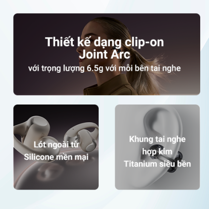 Thiết kế của OpenDots One hoàn toàn phù hợp cho các hoạt động thể thao cường độ cao. Với thiết kế JointArc™ dạng kẹp tai bằng hợp kim niken-titan siêu nhẹ và linh hoạt, tai nghe ôm chắc tai mà không gây khó chịu, ngay cả khi bạn chạy bộ, tập HIIT, đạp xe hay chơi thể thao ngoài trời.