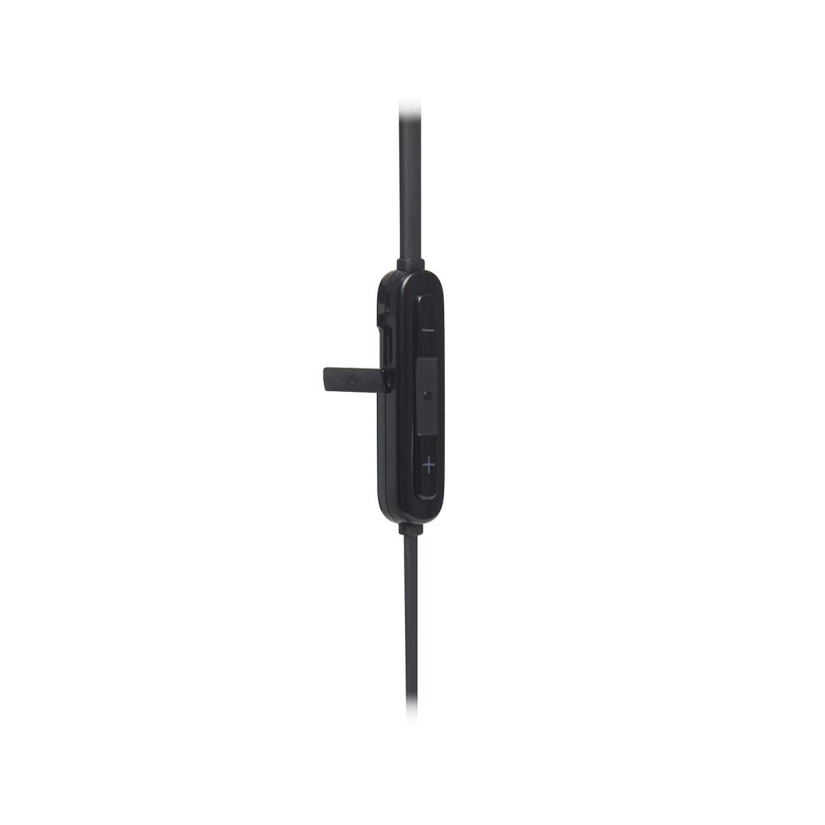 Dây tai nghe JBL T110BT được làm từ cao su dẻo, dẹt giúp chống rối hiệu quả. Trên dây thiết kế với 2 thanh nhựa, 1 thanh có 3 phím chức năng điều khiển chuyển nhạc, nút phát, dừng nhạc kiêm nút nguồn và cổng sạc, thanh nhựa còn lại thiết kế trơn không có nút bấm đóng vai trò đối trọng giữ cho dây tay nghe luôn ở trên cổ, rất thuận tiện khi bạn đeo tai nghe và chạy bộ.
