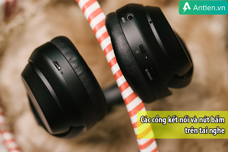 Sony WH-1000XM3 cũng được trang bị cổng sạc chuẩn USB-TypeC mới và cổng AUX 3.5 mm để phòng những trường hợp hết pin. Tai nghe còn được trang bị 1 nút bấm Ambient Sound để chỉnh qua lại giữa các chế độ: tắt hoàn toàn, chống ồn chủ động hay Ambient - dùng microphone để làm các âm thanh bên ngoài 'lọt' vào tai người dùng, tiện cho việc giao tiếp mà không cần phải bỏ tai ra (tính năng này cũng có thể được kích hoạt bằng cách đặt lòng bàn tay lên mặt cảm ứng).