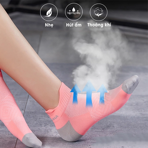 Phần mặt trên tất dạng lưới thoáng khí, thoát ẩm ra ngoài và khử mùi, kháng khuẩn tối đa.