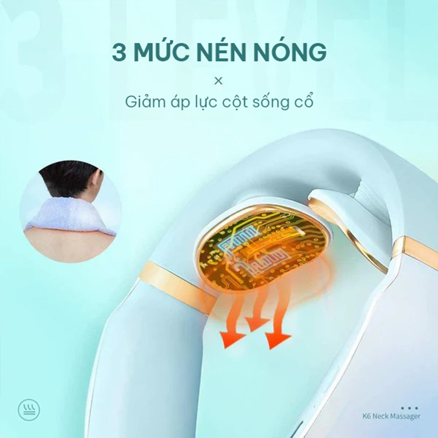 Máy trang bị 3 mức nhiệt chườm nóng giúp làm nóng nhanh và thúc đẩy lưu thông tuần hoàn máu