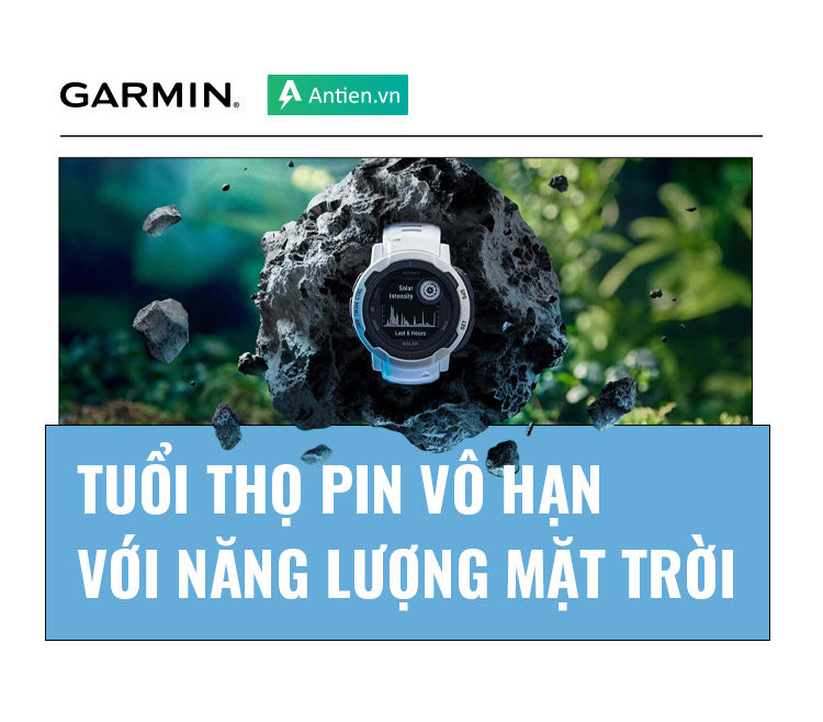Công nghệ Solar thế hệ mới của Garmin đã mang đến một tuổi thọ pin không tưởng. Mặt kính Power Glass tích hợp sạc năng lượng mặt trời với mức chuyển đổi năng lượng tăng đến 30% so với thế hệ trước đây. Garmin Instinct 2/ 2S Solar thực sự là chiếc đồng hồ thông minh đầu tiên của Garmin có thời lượng pin “không giới hạn” nếu đạt được các điều kiện ký tưởng cần có. Đó là phải sử dụng ít nhất 3 giờ mỗi ngày dưới cường độ ánh sáng 50.000 lux.