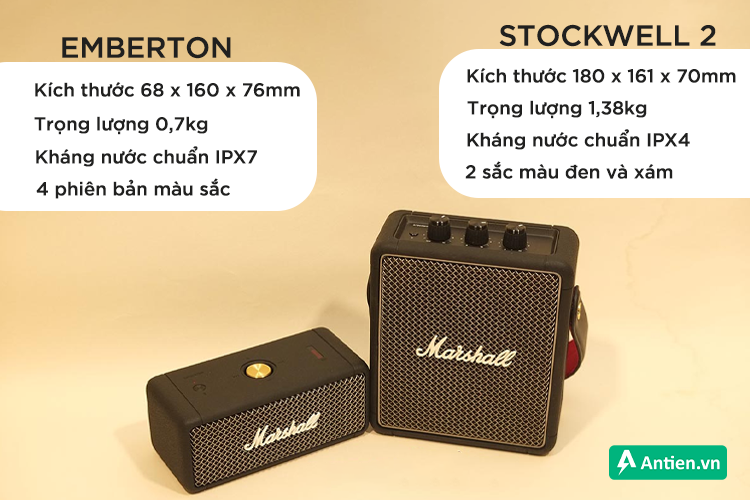 Bảng so sánh sự khác biệt về các thông số trên loa Marshall Emberton và Stockwell 2: