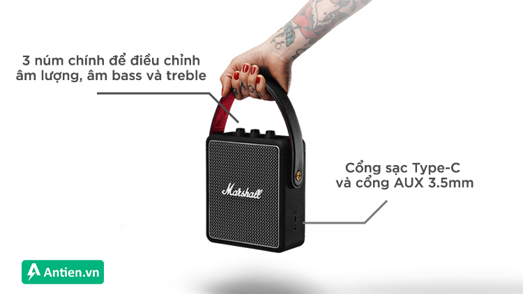 Stockwell 2 trang bị các nút điều khiển đầy đủ và hợp lý cho người dùng để tiện sử dụng. Phía trên có ba núm chính để điều chỉnh âm lượng, âm bass và treble, bên cạnh còn có một chỉ báo mức pin.
