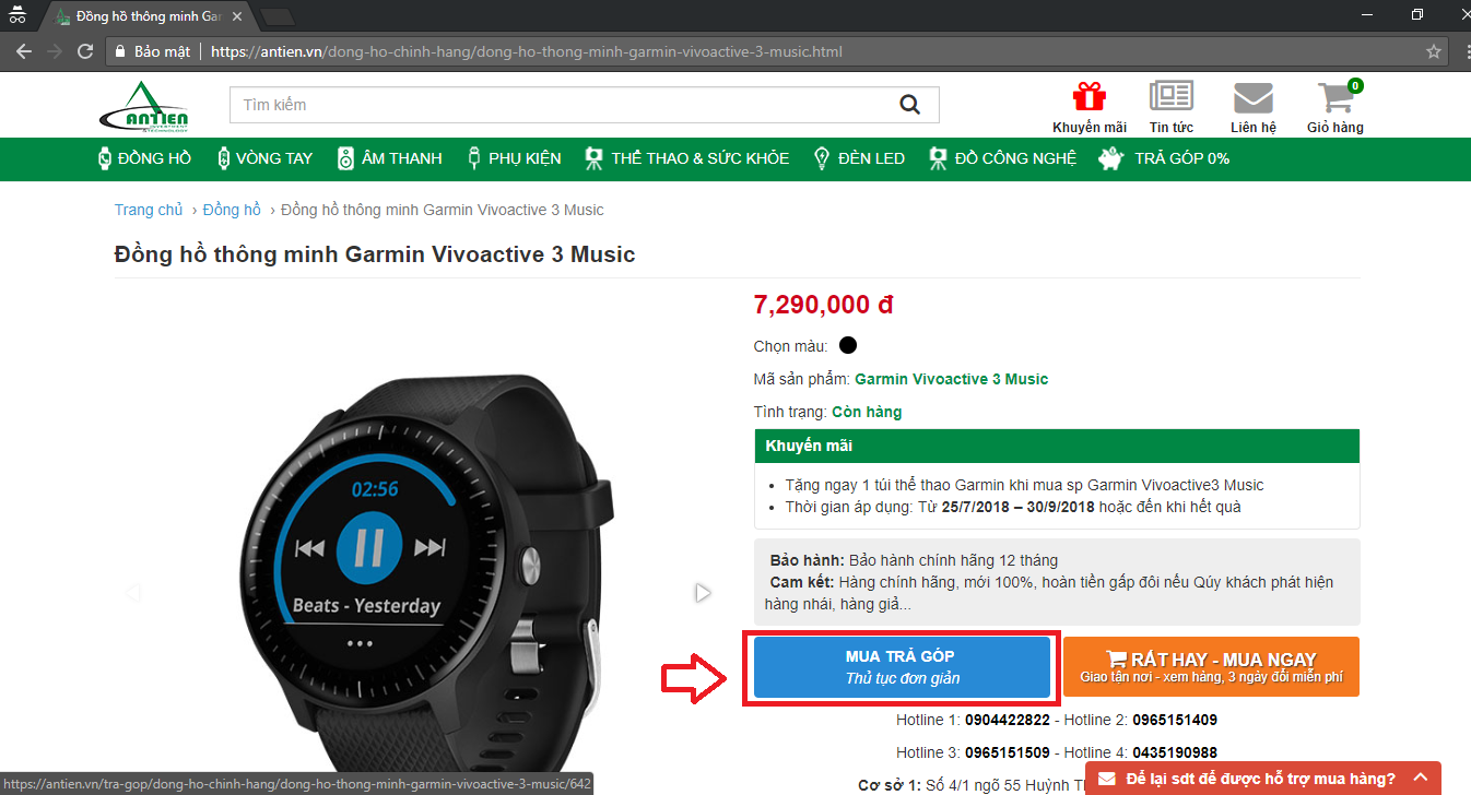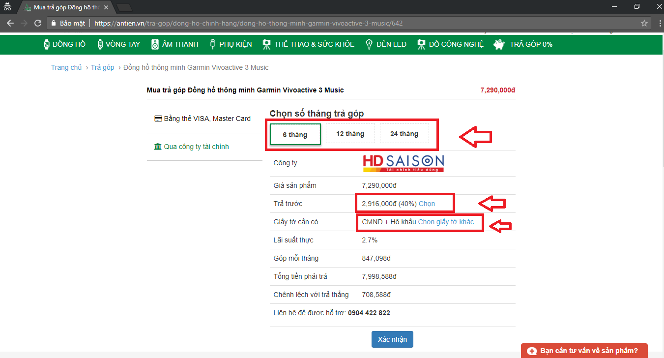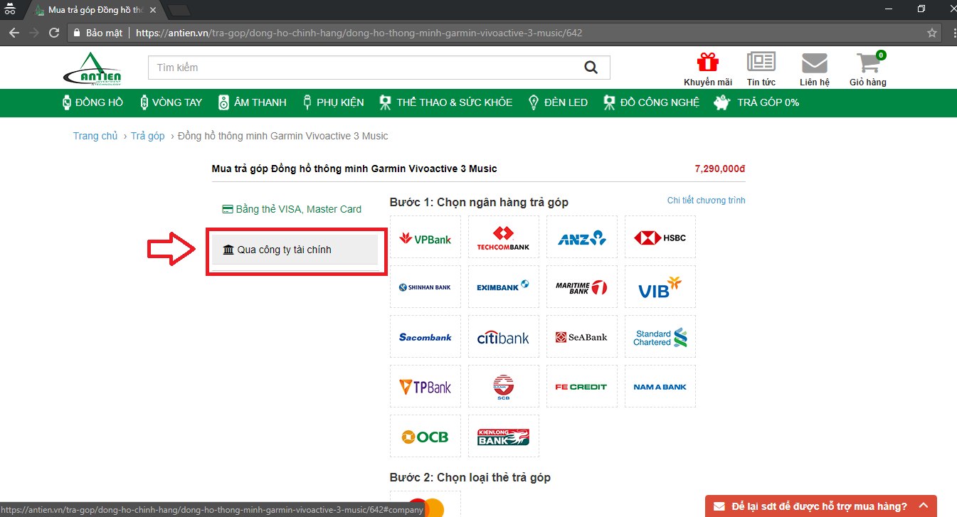 B1: Truy cập vào website Antien.vn và chọn sản phẩm bạn cần mua trả góp